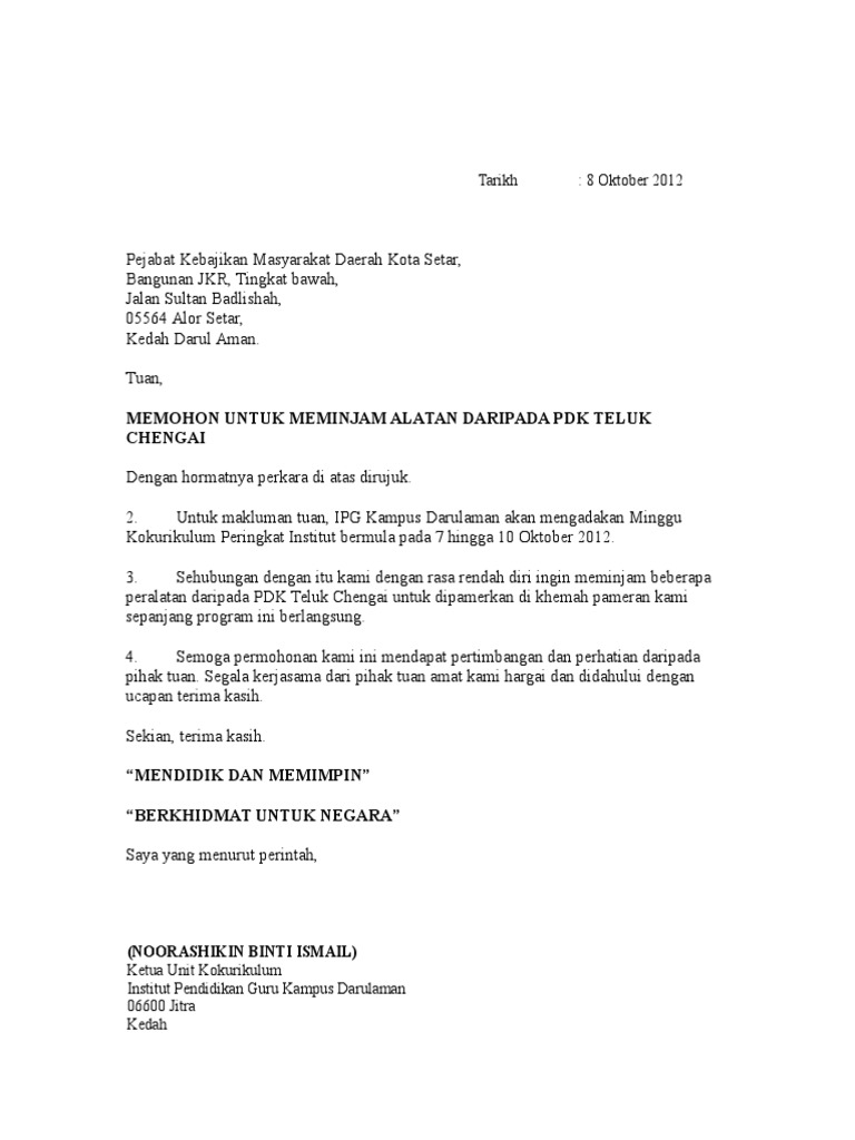 Surat Rasmi Permohonan Pinjaman Alatan Contoh Adjective Otosection